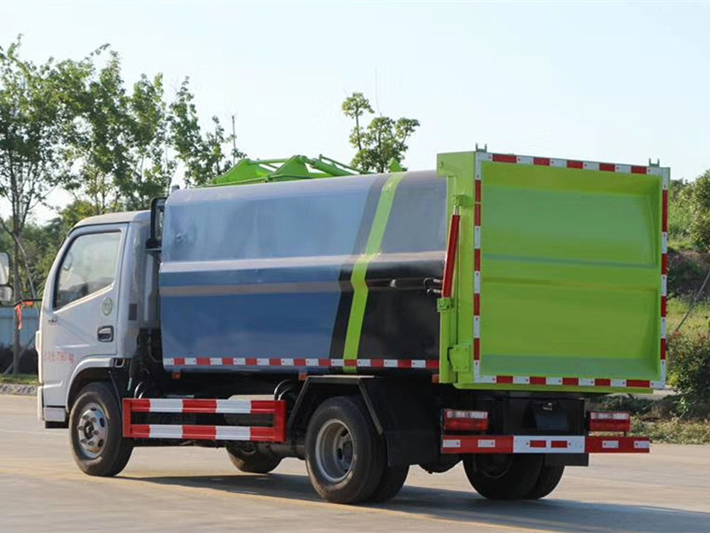 側裝壓縮式垃圾車(自裝卸式垃圾車)采用側上料機構,并設計具有密封功能的垃圾箱后門,通過推鏟對垃圾進行壓縮和卸料,可有效保證產品大裝載量。產品選用東風股份二類底盤,機動性強,搭載高品質電、液元件,操作方便,可靠性高。